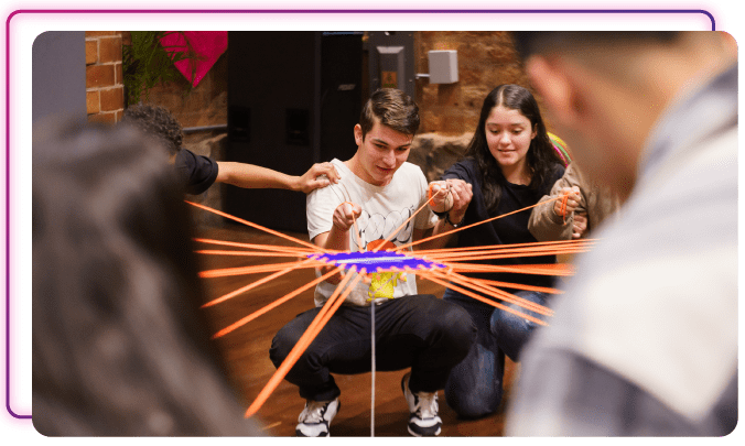 Una experiencia emocionante y vivencial donde nuestros participantes estarán inmersos en diferentes retos que los llevarán a superarse a nivel personal y grupal. Este espacio inolvidable combinará la gamificación y la formación para descubrir la necesidad que tenemos de fortalecer cuatro habilidades fundamentales de la nueva realidad: Gestión Emocional, Adaptabilidad, Empatía y Trabajo en Equipo.